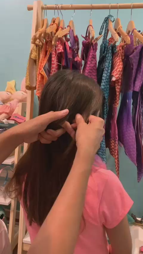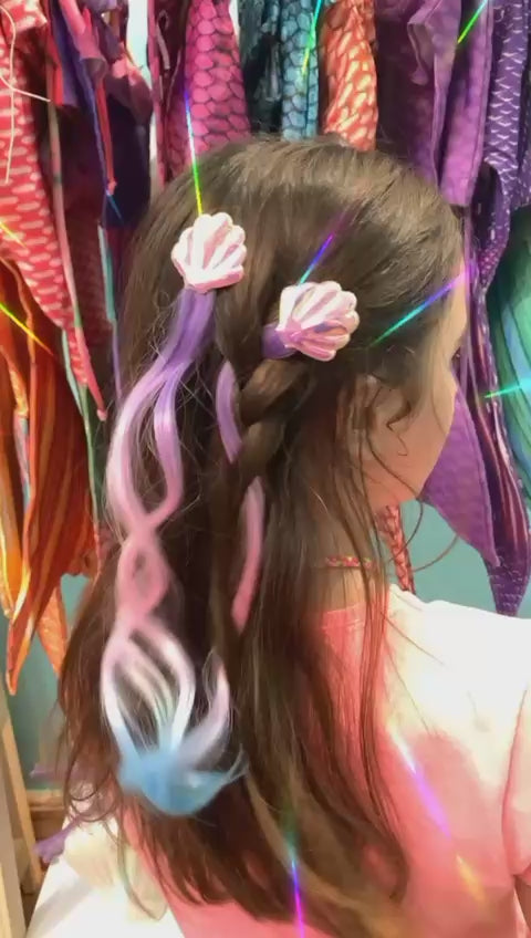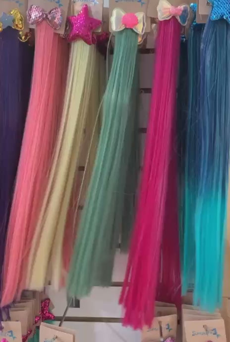 Presilha infantil Degradê Rosa e Roxo Coração com cabelo sintético super fácil de pentear e sem precisar de ferro!